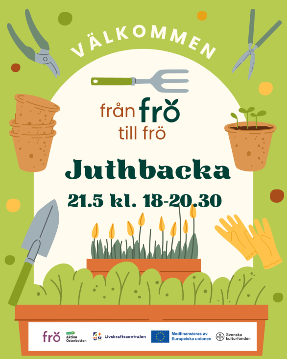 Från FRÖ till frö arrangeras i samarbete mellan projektet FRÖ, Flyktingvännerna, Nykarleby 4H och Juthbacka stiftelsen. Den 21 maj 2026 kl. 18–20.30 samlas vi vid Juthbacka i Nykarleby för att mötas över gränser och låta både idéer och vänskap gro.